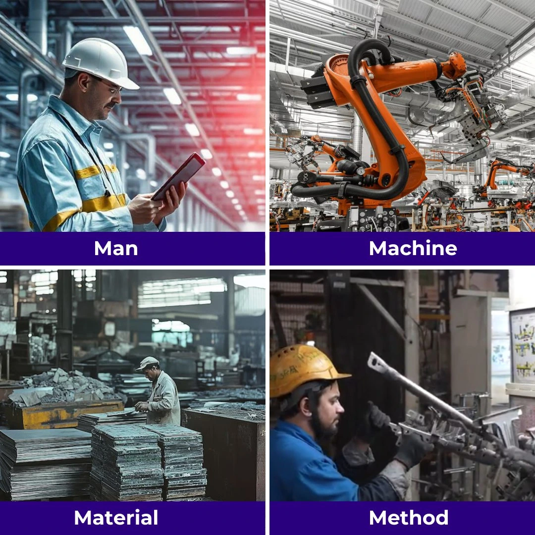 Material: The raw materials and components used in production. The quality, consistency, and availability of materials are crucial for minimizing waste and maintaining high product quality.